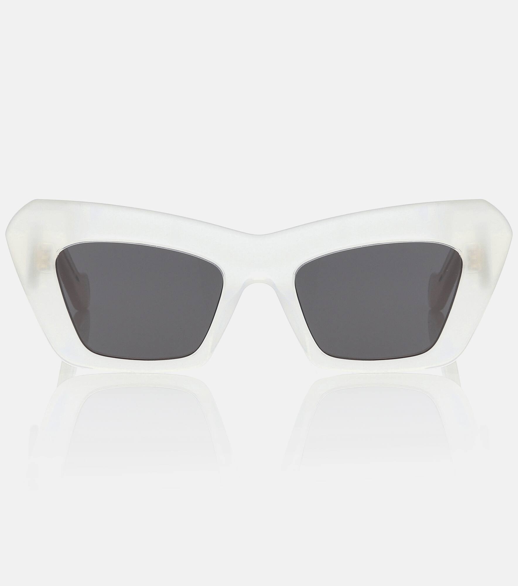 For your eyes only: the Anagram sunglasses from LOEWE will lend an enigmatic finish to any look. Made in Italy from transparent white acetate, they have a fierce cat-eye shape with gray lenses and the iconic Anagram in silver-tone hardware at the temples. Product Details - Frame color: white - Frame material: acetate - Lens color: light grey - comes with cleaning cloth - comes in a case - Lens filter category 3 - Made in Italy - Item number: P00451883 Size & Fit - Lens width: 50mm-1.95" - Bridge size: 19mm-0.75" - Earpiece length: 145mm-5.7"