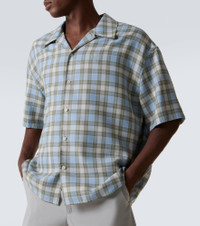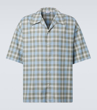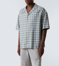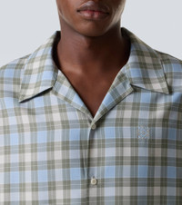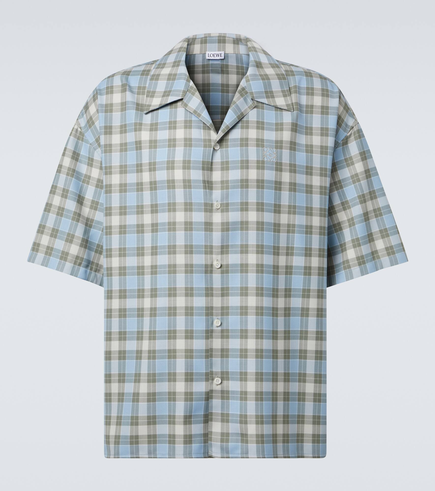 Crafted in Italy this shirt from Loewe is cut to a relaxed silhouette and features the Anagram embroidery on the chest. The piece is finished with a checked pattern all over. Product Details - Material: 55% polyester, 45% wool - Care instructions: dry clean - Made in Italy - Designer color name: Light Blue/White - Item color: blue, green - Contains non-textile parts of animal origin - Closure: buttoned placket - Item number: P01063168 Size & Fit - True to size - Dropped shoulders - Oversized - Non-stretchy fabric - Falls below the hip - Height of model is 189cm-74.5" and wears a size EU 41