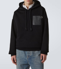The Anagram logo was designed by the Spanish artist Vicente Vela as a quadruple-L insignia that now lends instant recognition to any Loewe piece. This cotton jersey hoodie features the emblem on a debossed leather patch. Product Details - Material: 100% cotton - Care instructions: dry clean - Made in Portugal - Designer color name: Black - Trim: 100% leather - Item number: P01006375 Size & Fit - True to size - Dropped shoulders - Designed for a loose fit - Slightly stretchy fabric - Falls below the hip - The model in the picture is 185cm-6'1" and wearing a size L