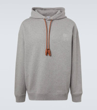 The Anagram logo was designed by the Spanish artist Vicente Vela as a quadruple-L insignia that now lends instant recognition to any Loewe piece. This grey hoodie is made from cotton jersey and features the symbol embroidered at the chest. Product Details - Material: 100% cotton - Care instructions: dry clean - Made in Portugal - Designer color name: Grey Melange - Item color: gray - Details: 100% cotton - Embroidery: 100% polyester - Trim: 100% lamb leather - Contains non-textile parts of animal origin - Drawstring hood - Cuff: ribbed - Hem: ribbed - Item number: P01123319 Size & Fit - True to size - Dropped shoulders - Designed for a loose fit - Slightly stretchy fabric - Falls below the hip - The model in the picture is 185cm-6'1" and wearing a size L