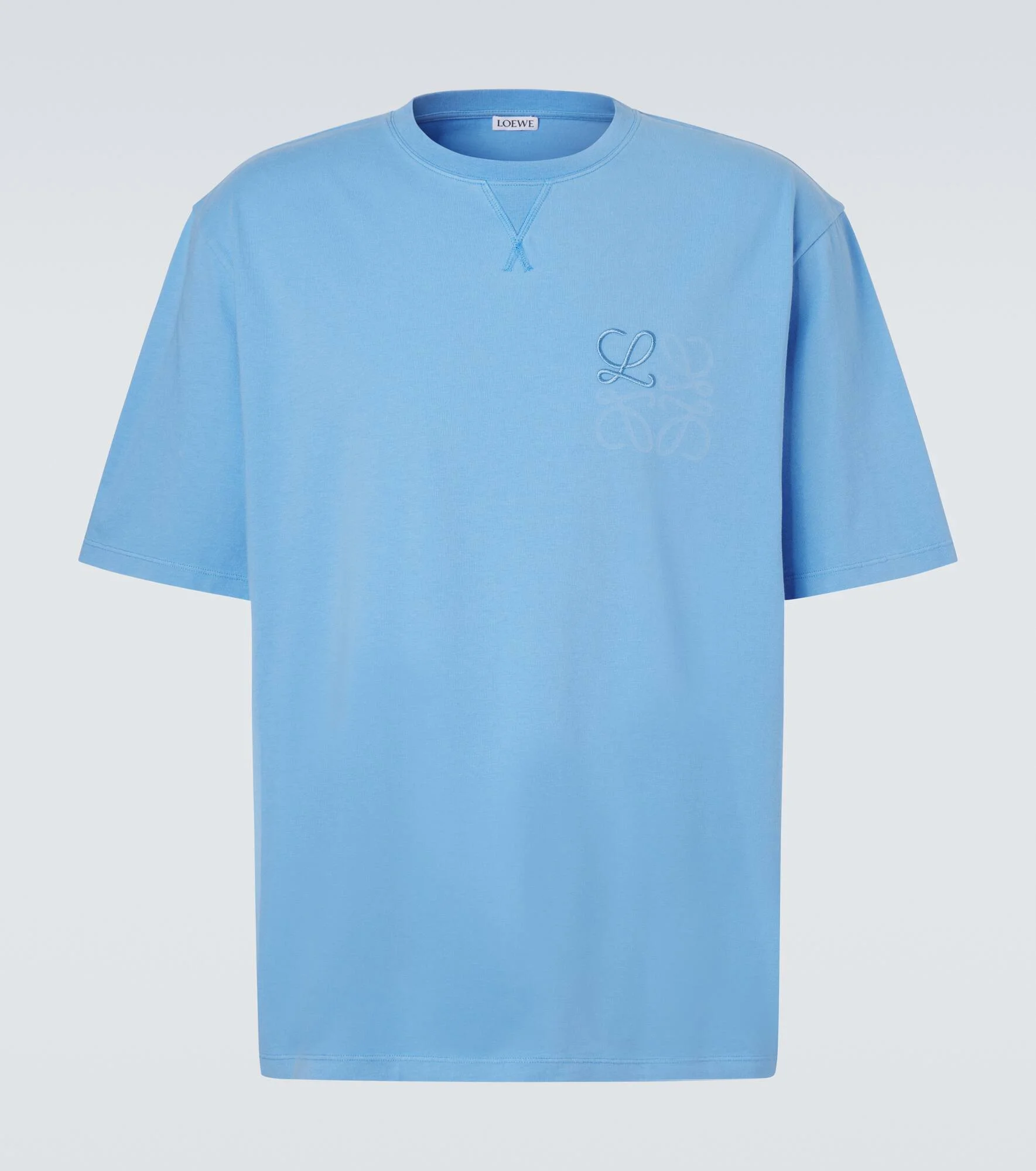 The Anagram logo was designed by the Spanish artist Vicente Vela as a quadruple-L insignia that now lends instant recognition to any Loewe piece. It's featured on this cotton jersey T-shirt as the defining detail of the style. Product Details - Material: 100% cotton - Care instructions: machine wash at 30 degrees - Made in Portugal - Color: blue - Designer color name: Blue - Trim: 97% cotton, 3% elastane - Embroidery: 100% polyester - Item number: P01123330 Size & Fit - True to size - For a closer fit, we recommend taking one size down - Dropped shoulders - Oversized - Non-stretchy fabric - Falls to the hip - Height of model is 192cm-75.5" and wears a size L