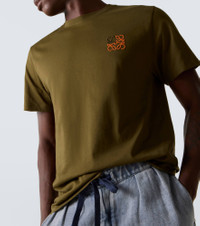 Founded in 1846 as a leathermaking company, Loewe maintains a commitment to art and craft of the utmost quality. This T-shirt is made from soft cotton jersey and features Anagram embroidery for a signature touch. Product Details - Material: 100% cotton - Care instructions: machine wash at 30 degrees - Made in Portugal - Designer color name: Khaki Green - Item color: green - Trim: 99% cotton, 1% elastane - Embroidery: 100% polyester - Collar: crewneck - Item number: P01063182 Size & Fit - True to size - Dropped shoulders - Designed for a loose fit - Slightly stretchy fabric - Falls below the hip - Height of model is 189cm-74.5" and wears a size L