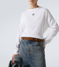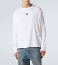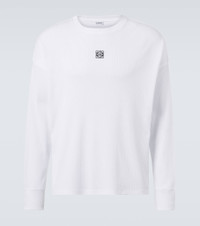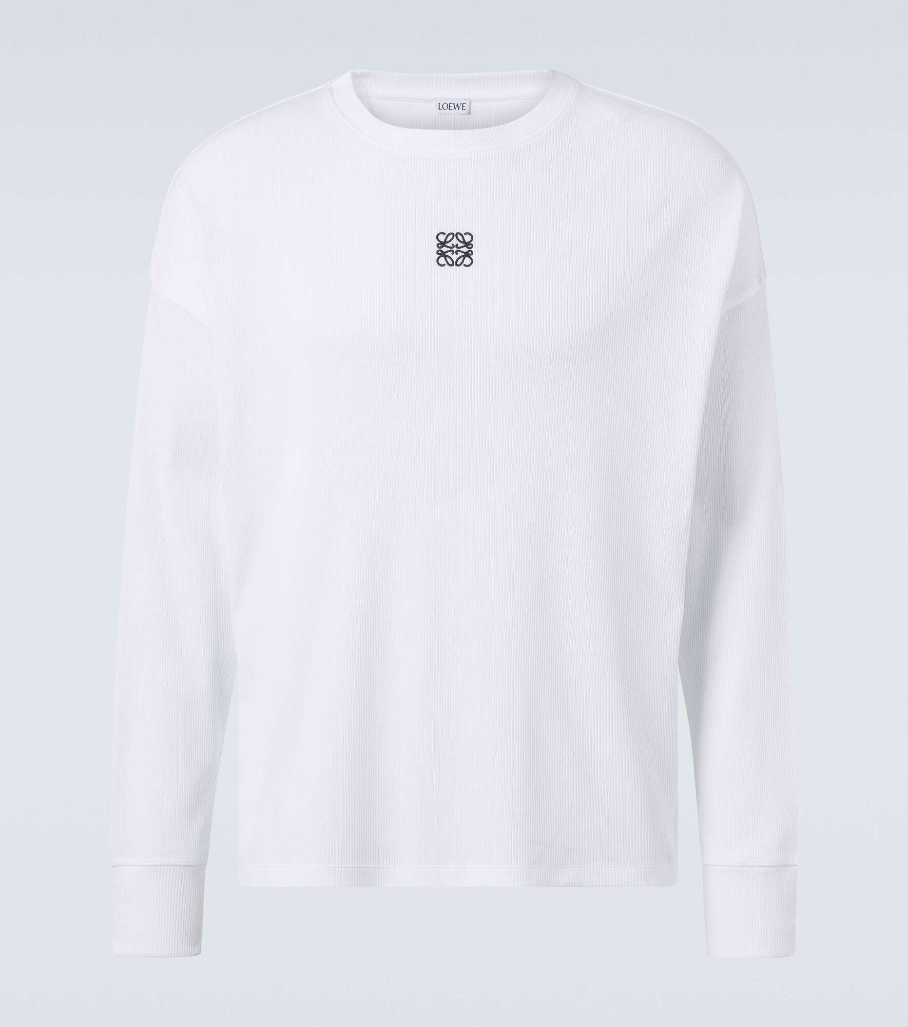 The Anagram logo lends instant recognition to any Loewe piece. Crafted from ribbed-knit cotton, this long-sleeved T-shirt features the iconic symbol embroidered at the chest. Product Details - Material: 100% cotton - Care instructions: machine wash at 30 degrees - Made in Portugal - Designer color name: White - Item color: white - Embroidery: 100% polyester - Item number: P01063398 Size & Fit - True to size - For a closer fit, we recommend taking one size down - Dropped shoulders - Designed for a loose fit - Stretchy fabric - Falls to the hip - The model in the picture is 185cm-6'1" and wearing a size L