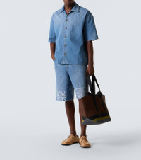 Crafted in Italy from denim, this bowling shirt from Loewe features slightly dropped shoulders. The piece is finished with the Anagram motif on the sleeves. Product Details - Material: 100% cotton - Care instructions: machine wash at 30 degrees - Made in Italy - Designer color name: Washed Denim - Item color: blue - Details: 100% cotton - Collar: Cuban - Closure: buttoned front - Item number: P01063381 Size & Fit - True to size - Dropped shoulders - Without pleats in the back - Designed for a loose fit - Non-stretchy fabric - Falls to the hip - Height of model is 189cm-74.5" and wears a size IT 50