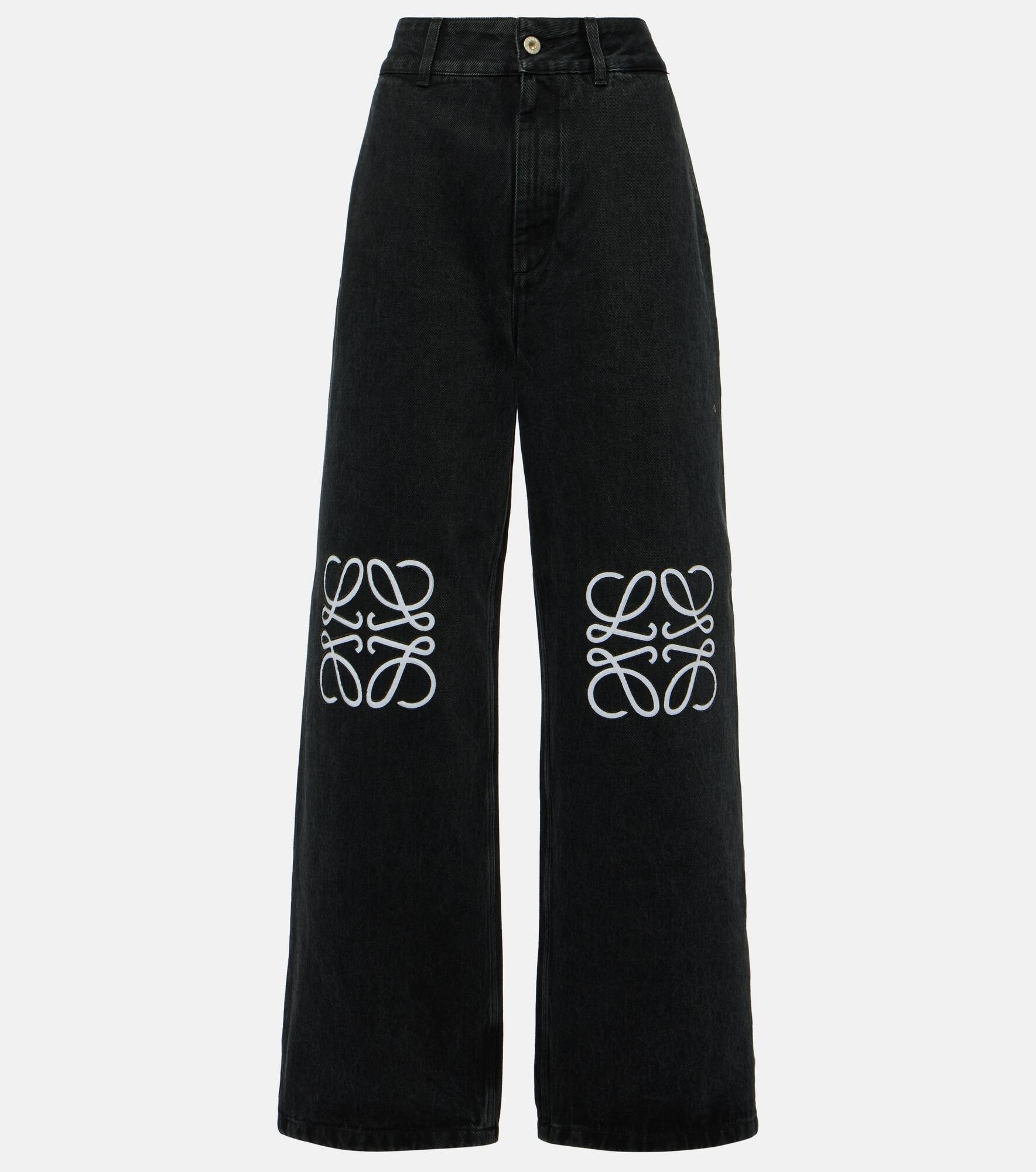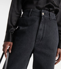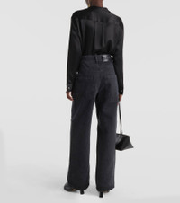 . Product Details - Material: 100% cotton - Care instructions: machine wash at 30 degrees - Made in Italy - Designer color name: Black - Closure: zipper fly, button fastening - Pockets: side slit pockets, back pockets - Details: 100% leather - Contains non-textile parts of animal origin - Item number: P00880809 Size & Fit - True to size - Non-stretchy fabric - Wide-leg - High-rise - The model seen in the picture is 178cm-5'10" and wearing a size FR 36