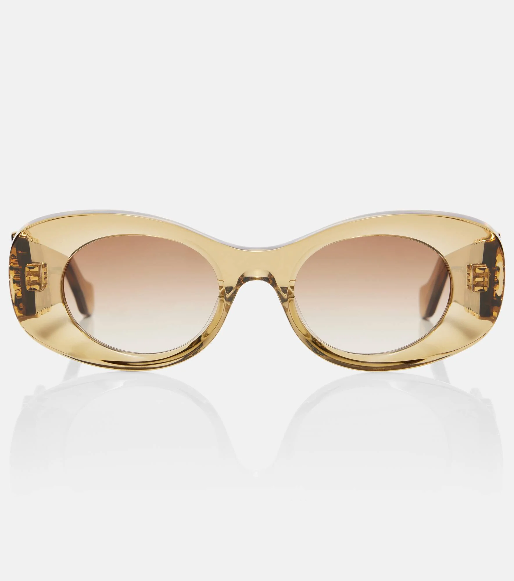 Italian-crafted from lightweight acetate, these oval sunglasses are defined by the emblematic Anagram hardware at the temples. The logo was designed by the Spanish artist Vicente Vela as a quadruple-L insignia that now lends instant recognition to any Loewe piece. Product Details - Frame material: acetate - Frame color: green - Lens filter category 2 - Lens color: brown - Made in Italy - Includes: case, cleaning cloth - The color of the case may vary - Item number: P01098167 Size & Fit - Lens width: 49mm-1.95" - Bridge size: 21mm-0.85" - Earpiece length: 145mm-5.7"