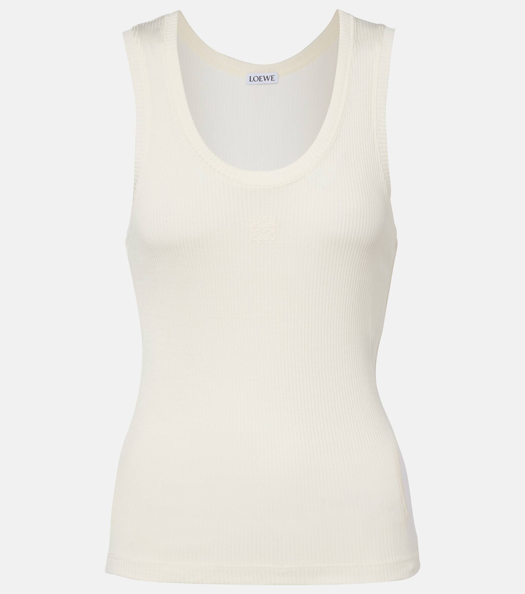 The Anagram logo was designed by the Spanish artist Vicente Vela as a quadruple-L insignia that now lends instant recognition to any Loewe piece. It's featured on this tank top, ribbed-knit from silk. Product Details - Material: 100% silk - Care instructions: dry clean - Made in Portugal - Designer color name: Soft White - Item color: white - Embroidery: 100% polyester - Item number: P01087737 Size & Fit - True to size - Fitted - Stretchy fabric - Slightly cropped - The model seen in the picture is 178cm-5'10" and wearing a size XS