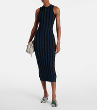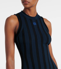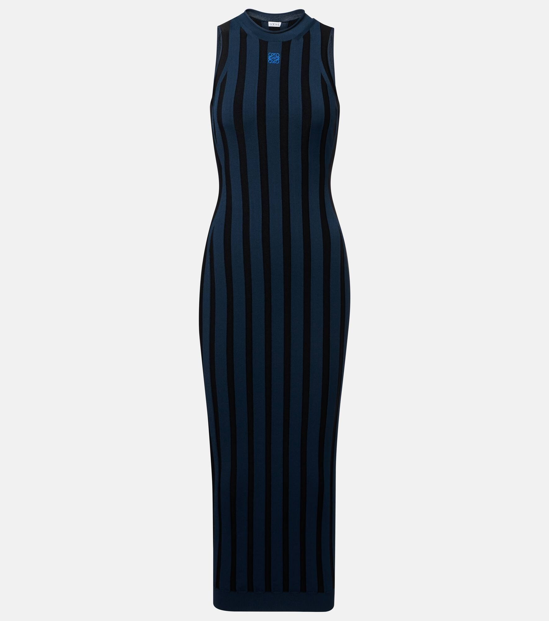 This maxi dress from Loewe features a flattering slim fit, sleeveless silhouette complemented by the brand's iconic Anagram detail at the heart. The design is finished with a charming all-over striped pattern. Product Details - Material: 83% viscose, 17% polyester - Care instructions: dry clean - Made in Italy - Designer color name: Navy Blue/Black - Item color: blue, black - Embroidery: 100% polyester - Hem: ribbed - Item number: P01066212 Size & Fit - True to size - Fitted - Stretchy fabric - The model seen in the picture is 178cm-5'10" and wearing a size XS