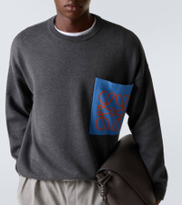 Founded in 1846 as a leathermaking company, Loewe maintains a commitment to art and craft with the utmost quality. This crewneck sweater is defined by a contrasting patch pocket accented by the brand's signature Anagram motif. Product Details - Material: 49% cotton, 42% viscose, 9% polyamide - Care instructions: dry clean - Made in Italy - Designer color name: Grey/Blue - Item color: gray - Collar: crewneck - Cuff: ribbed - Pockets: patch pockets - Item number: P01063378 Size & Fit - True to size - Dropped shoulders - Designed for a loose fit - Slightly stretchy fabric - Falls to the hip - Height of model is 189cm-74.5" and wears a size L