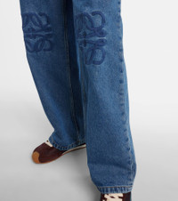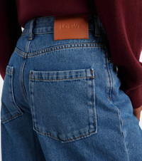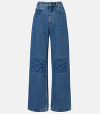 These wide-leg jeans from Loewe are emblazoned with the brand's Anagram embroidery. The pair is made from denim in a mid-blue wash and has a high-rise silhouette with a baggy fit. Product Details - Material: 100% cotton - Care instructions: dry clean - Made in Italy - Designer color name: Jeans Blue - Item color: blue - Trim: 65% polyester, 35% cotton - Insert: 100% calf leather - Pocket lining: 65% polyester, 35% cotton - Pockets: five pockets - Closure: zipper fly, button fastening - Item number: P01106335 Size & Fit - Fits small to size - we recommend trying one size larger - Non-stretchy fabric - Wide-leg - High-rise - The model seen in the picture is 178cm-5'10" and wearing a size FR 36