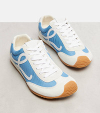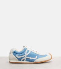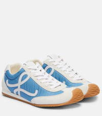 Crafted in Italy, the Ballet Runner 2.0 from Loewe features leather insoles and rubber soles on almond-toe silhouettes. This design showcases the brand's monogram on the sides and the iconic Anagram embossed on the tongues. Product Details - Upper: calf leather (suede), fabric - Lining: leather - Sole: leather insole, rubber sole - Toe shape: almond toe - Made in Italy - Includes: dust bag, extra laces, shoe box - Designer color name: Blue/Shite/Soft White - Item color: white, blue - Item number: P01066032 Size & Fit - True to size - Half sizes please take the next size down - European sizes - 2cm-1" wedge heel (size EU 38)