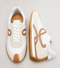 Founded in 1846 as a leathermaking company, Loewe maintains a commitment to art and craft of the utmost quality. The Ballet Runner 2.0 sneakers are a low-top style with suede trims and rubber soles. Product Details - Upper: fabric, leather (suede) - Lining: fabric - Sole: leather insole, rubber sole - Color: white - Toe shape: round toe - Made in Italy - Includes: shoe box, dust bag - Designer color name: Chocolate/Almost Optic - Item number: P01165122 Size & Fit - True to size - Half sizes please take the next size down - European sizes