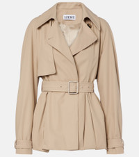 Founded in 1846 as a leathermaking company, Loewe maintains a commitment to art and craft of the utmost quality. The Balloon jacket is crafted from beige cotton into a trench-inspired design with a belted waist that accentuates its voluminous silhouette. Product Details - Material: 100% cotton - Care instructions: dry clean - Made in Italy - Designer color name: Beige - Item color: beige - Insert: 100% calf leather - Contains non-textile parts of animal origin - Lining: 100% viscose - Closure: buttoned front - Detachable belt - Drawstring at the hem for adjustable fit - Item number: P01104961 Size & Fit - True to size - Loose fit, comes with belt - Non-stretchy fabric - Falls below the hip - The model seen in the picture is 178cm-5'10" and wearing a size FR 34