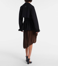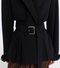 Founded in 1846 as a leathermaking company, Loewe maintains a commitment to art and craft of the utmost quality. The Balloon jacket is crafted from black cotton into a trench-inspired design with a belted waist that accentuates its voluminous silhouette. Product Details - Material: 100% cotton - Care instructions: dry clean - Made in Italy - Designer color name: Black - Item color: black - Insert: 100% calf leather - Lining: 100% viscose - Contains non-textile parts of animal origin - Closure: buttoned front - Drawstring at the hem for adjustable fit - Detachable belt - Item number: P01104960 Size & Fit - True to size - Loose fit, comes with belt - Non-stretchy fabric - Falls below the hip - The model seen in the picture is 178cm-5'10" and wearing a size FR 34
