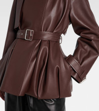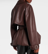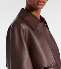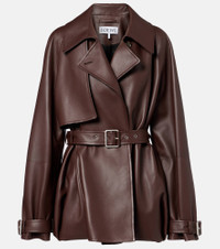 Founded in 1846 as a leathermaking company, Loewe maintains a commitment to art and craft of the utmost quality. The Balloon jacket is crafted from buttery soft leather into a trench-inspired design with a belted waist that accentuates its voluminous silhouette. Product Details - Material: 100% lamb leather - Care instructions: specialist clean - Made in Spain - Designer color name: Brown - Item color: brown - Lining: 100% viscose - Sleeve lining: 100% viscose - Pocket lining: 100% cotton - Closure: buttoned front - Pockets: side slit pockets - Detachable belt - Item number: P01104995 Size & Fit - True to size - Loose fit, comes with belt - Non-stretchy fabric - Falls below the hip - Height of model is 180cm-71" and wears a size FR 34
