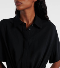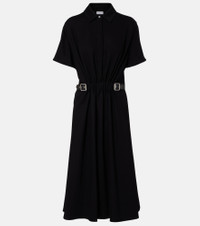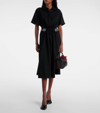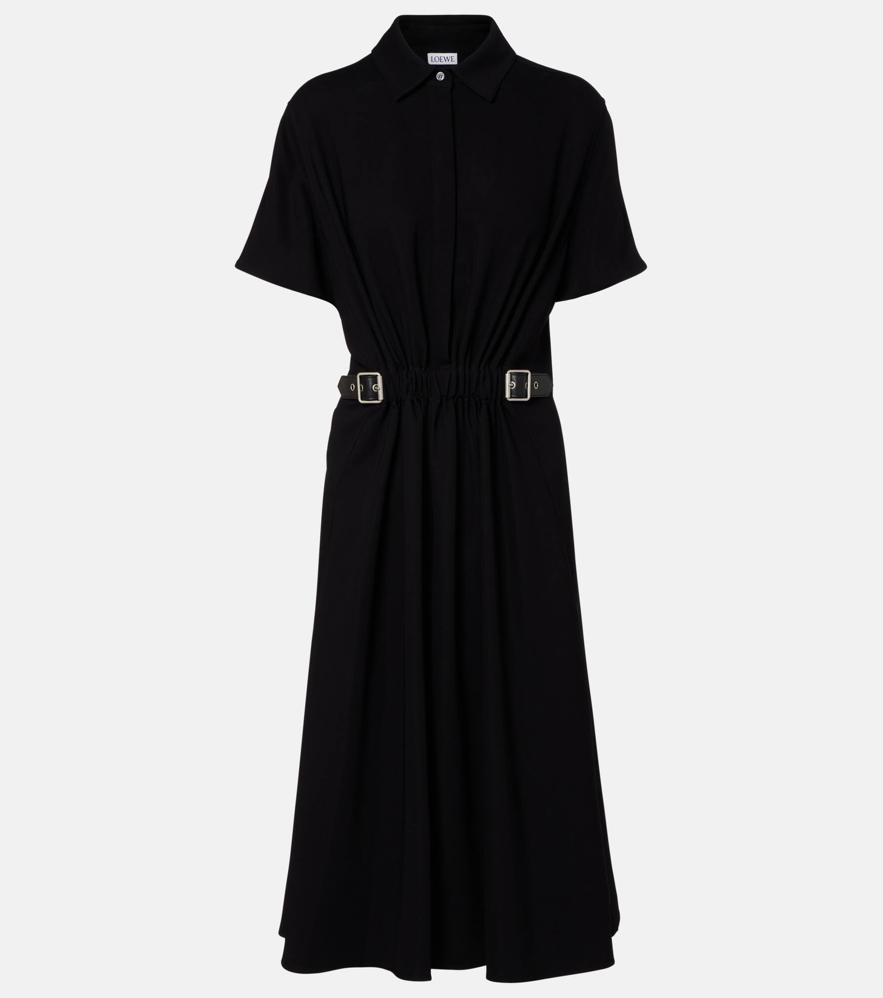 This midi dress from Loewe strike the perfect balance between elegance and ease. The black design is defined by a slightly flared silhouette, accentuated by a belted waist with silver-toned hardware. Product Details - Material: 96% viscose, 4% elastane - Care instructions: dry clean - Made in Italy - Designer color name: Black - Item color: black - Insert: 100% polyester - Interlining: 100% polyester - Collar: classic (Straight point) - Closure: buttoned front - Item number: P01104982 Size & Fit - True to size - Dropped shoulders - Designed for a loose fit - Non-stretchy fabric - The model seen in the picture is 178cm-5'10" and wearing a size FR 34