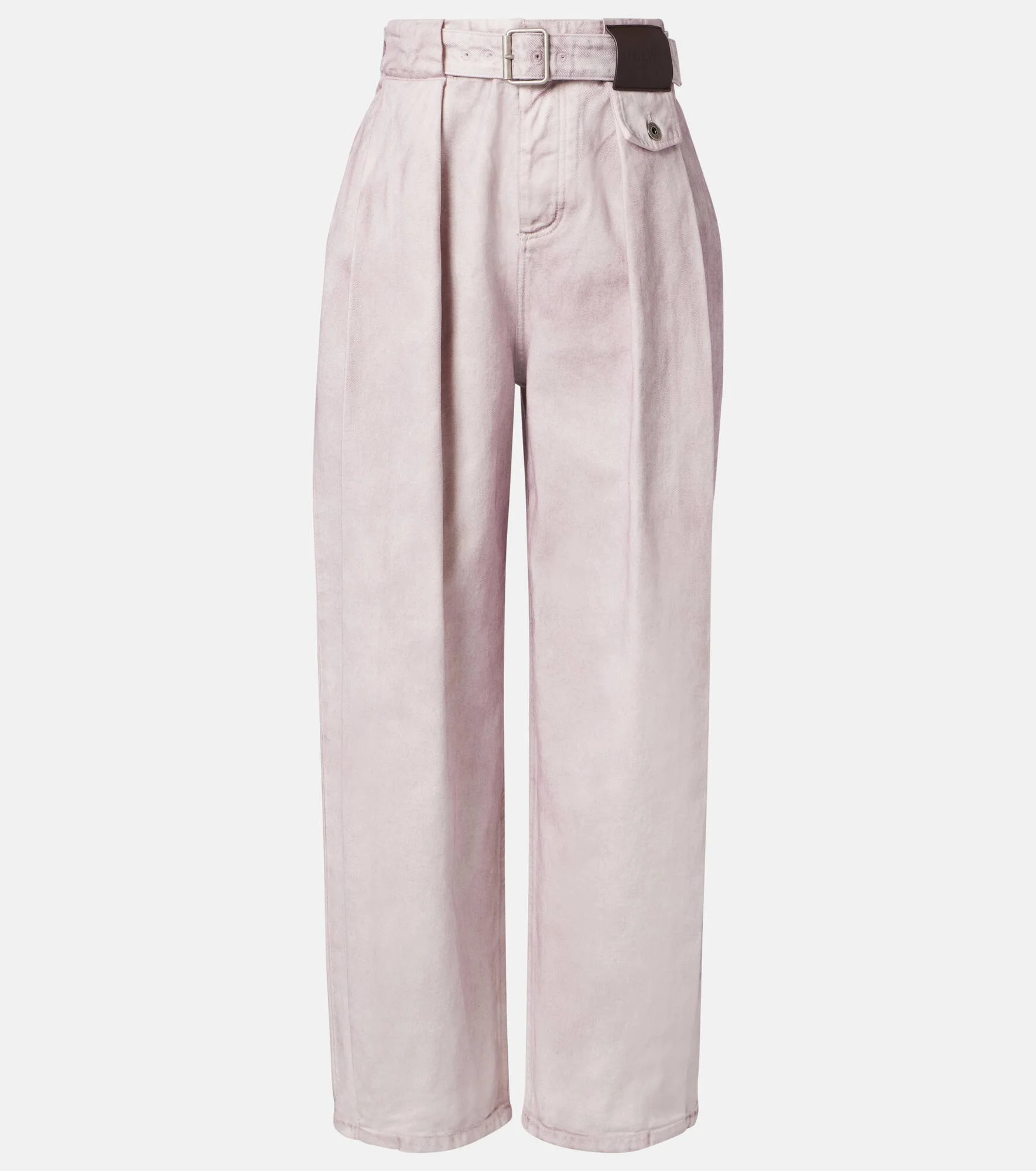 Founded in 1846 as a leathermaking company, Loewe maintains a commitment to art and craft with the utmost quality. Crisp pleats, a belted waist, and a logo-debossed leather patch define these light pink, wide-leg jeans. Product Details - Material: 100% cotton - Care instructions: dry clean - Made in Italy - Color: pink - Designer color name: Pink - Insert: 100% leather - Pocket lining: 100% cotton - Contains non-textile parts of animal origin - Detachable belt - Closure: concealed button placket - Pockets: side slit pockets, back pockets, back pockets - Item number: P01118207 Size & Fit - True to size - Adjustable at the waist - Non-stretchy fabric - Wide-leg - High-rise - The model seen in the picture is 178cm-5'10" and wearing a size FR 34