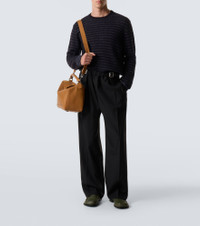 The Campo penny loafers from Loewe are handcrafted in Italy, reflecting the house's centuries-long expertise and artisanal methods. The pair is cut from leather to a square-toed silhouette and features two-tone uppers. Product Details - Upper: calf leather - Lining: lamb leather - Sole: leather insole, leather and rubber sole - Toe shape: square toe - Made in Italy - Includes: dust bag, shoe box - Designer color name: Sage/Black - Item color: green, black - Item number: P01063201 Size & Fit - True to size - Half sizes please take the next size down - European sizes