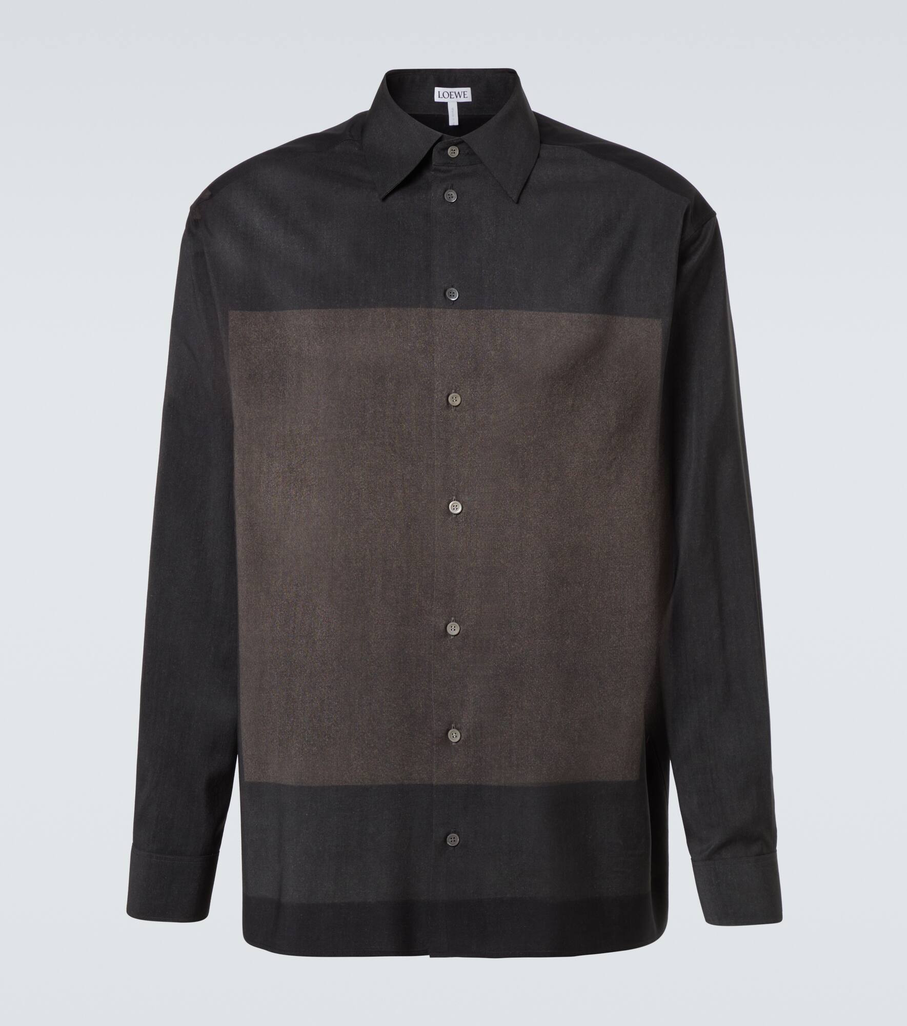 Founded in 1846 as a leathermaking company, Loewe maintains a commitment to art and craft of the utmost quality. Made in Italy from wool, this shirt is characterized by its colorblocked construction. Product Details - Material: 100% wool - Care instructions: dry clean - Made in Italy - Designer color name: Black/Grey - Item color: black, gray - Embroidery: 100% polyester - Contains non-textile parts of animal origin - Collar: classic (Straight point) - Closure: buttoned placket - Cuff: one button - Item number: P01098409 Size & Fit - True to size - For a closer fit, we recommend taking one size down - With pleats in the back - Oversized - Non-stretchy fabric - Falls below the hip - The model in the picture is 185cm-6'1" and wearing a size EU 40