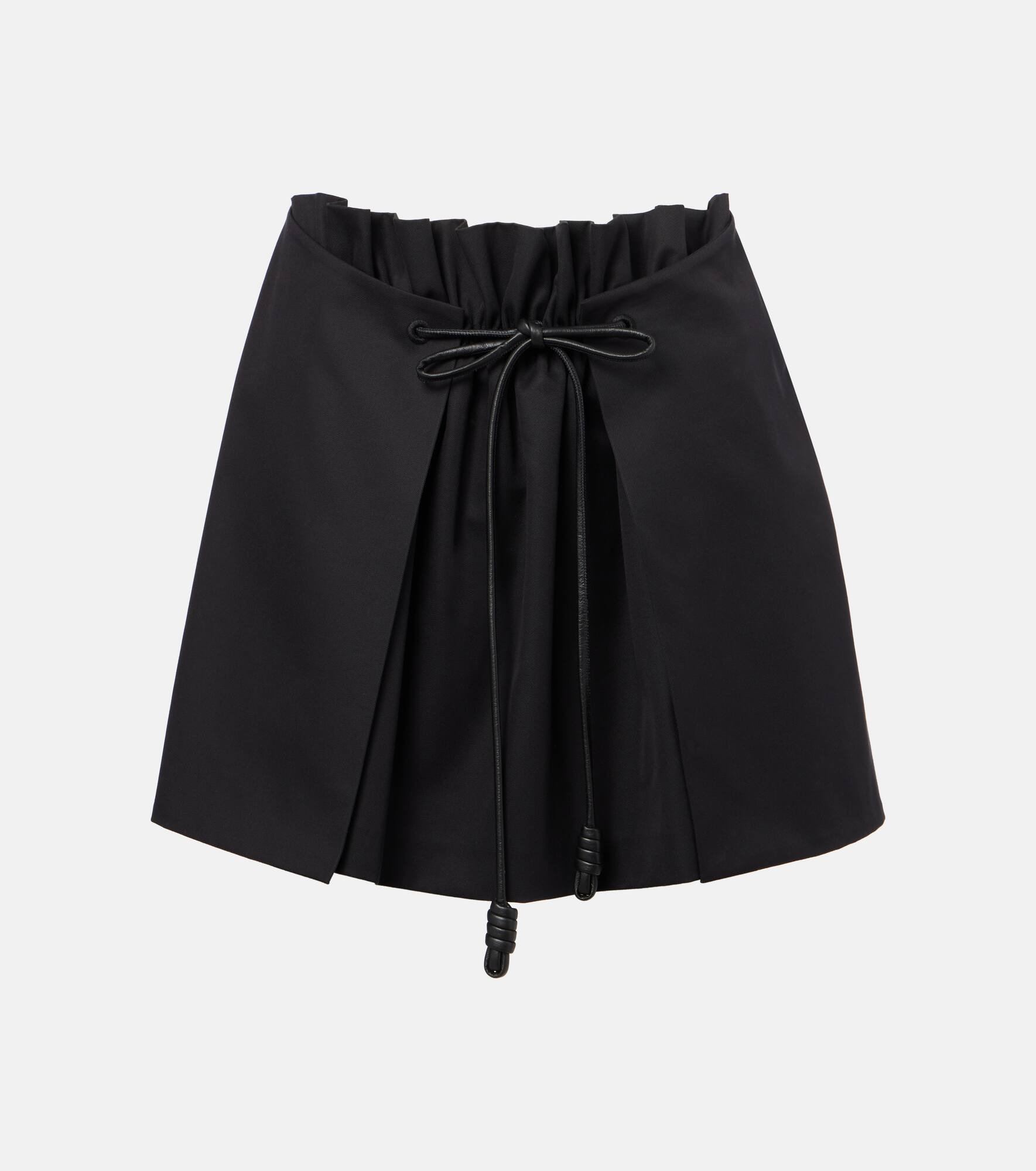 Crafted in Italy from cotton and silk, this miniskirt from Loewe utilizes the iconic knot drawstrings. This design features a zipped side and an elasticated waist. Product Details - Material: 90% cotton, 10% silk - Care instructions: dry clean - Made in Italy - Designer color name: Black - Item color: black - Details: 100% calf leather - Lining: 100% cotton - Contains non-textile parts of animal origin - Elasticated drawstring waist - Closure: zipped side - Item number: P01066178 Size & Fit - True to size - Elasticated waist - Non-stretchy fabric - Sits low on the hips - Height of model is 174cm-68.5" and wears a size FR 36