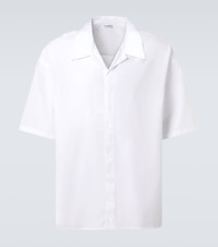 The Anagram logo was designed by the Spanish artist Vicente Vela as a quadruple-L insignia that now lends instant recognition to any Loewe piece. This cotton bowling shirt has a relaxed silhouette with a concealed buttons, and an embroidered Anagram on the front. Product Details - Material: 100% cotton - Care instructions: machine wash at 30 degrees - Made in Italy - Designer color name: White - Item color: white - Embroidery: 100% polyester - Contains non-textile parts of animal origin - Closure: concealed button placket - Collar: Cuban - Item number: P01063170 Size & Fit - True to size - For a closer fit, we recommend taking one size down - Dropped shoulders - Without pleats in the back - Oversized - Non-stretchy fabric - Falls below the hip - Height of model is 189cm-74.5" and wears a size EU 40