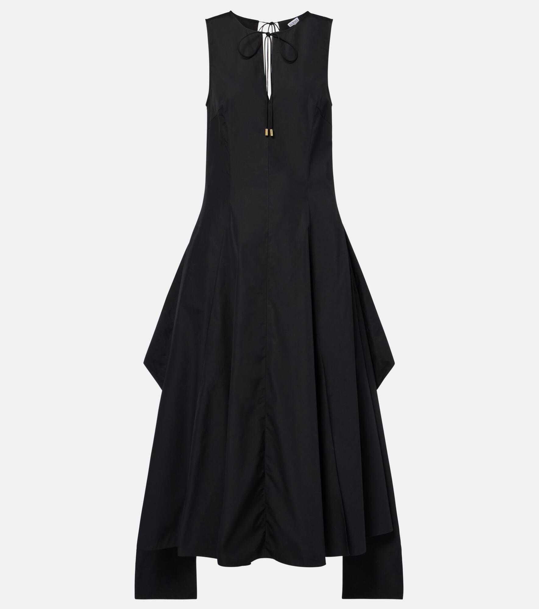 Crafted in Italy from pure cotton poplin, this wrap dress from Loewe showcases a sleeveless style with a tie-detail at the neck. This design features a zipped side and side slit pockets. Product Details - Material: 100% cotton - Care instructions: machine wash at 30 degrees - Made in Italy - Designer color name: Black - Item color: black - Closure: zipped side - Self-tie neck - Pockets: side slit pockets - Short vent - Item number: P01066192 Size & Fit - True to size - Cinched waist - Non-stretchy fabric - Height of model is 180cm-71" and wears a size FR 36