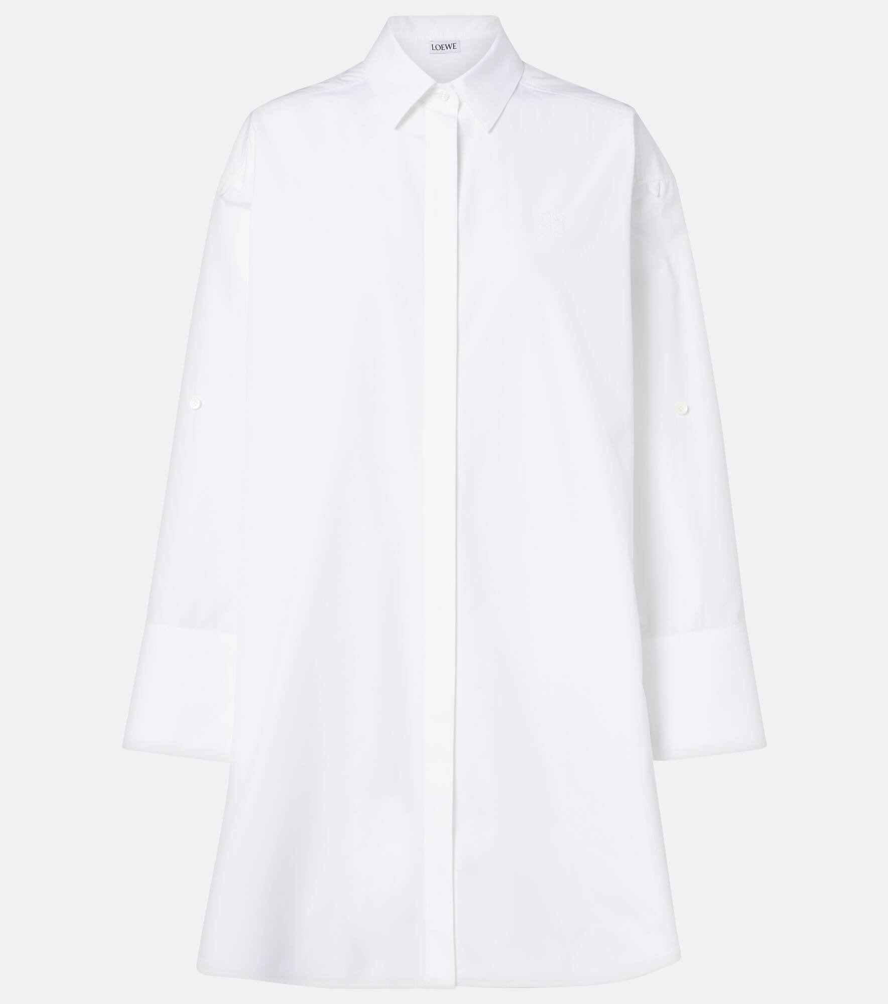 Founded in 1846 as a leathermaking company, Loewe maintains a commitment to art and craft of the utmost quality. This shirt dress is crafted from pure cotton into a relaxed silhouette with a concealed button placket. Product Details - Material: 100% cotton - Care instructions: machine wash at 30 degrees - Made in Italy - Designer color name: White - Item color: white - Embroidery: 100% polyester - Contains non-textile parts of animal origin - Closure: concealed buttoned front - Collar: classic (Straight point) - Item number: P01066194 Size & Fit - True to size - Dropped shoulders - Oversized - Non-stretchy fabric - The model seen in the picture is 178cm-5'10" and wearing a size FR 34