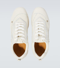 Designed with jagged seams that look as though they've been ripped apart, Loewe's Deconstructed style is a fresh take on worn-in sneakers. Crafted from white leather, this pair has rivet detailing and padded ankle support. Product Details - Upper: cow leather - Toe shape: round toe - Sole: fabric insole, leather sole - Comes with dust bags, Comes with a box - Closure: lace-up - Designer color name: White - Lining: fabric - Made in Italy - Item number: P00753105 Size & Fit - Fits small to size - we recommend trying one size larger - European sizes