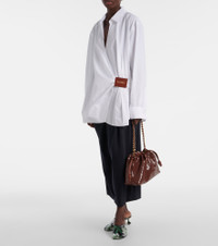 Product Details - Material: 100% cotton - Care instructions: dry clean - Made in Italy - Designer color name: White - Contains non-textile parts of animal origin - Trim: 100% leather - Item number: P01043281 Size & Fit - True to size - Dropped shoulders - Designed for a loose fit - Non-stretchy fabric - Falls below the hip - The model seen in the picture is 178cm-5'10" and wearing a size FR 36