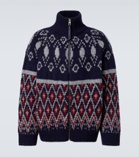 Founded in 1846 as a leathermaking company, Loewe maintains a commitment to art and craft of the utmost quality. This wool cardigan is designed with a zipped front and a high neck and features a timeless Fair Isle pattern. Product Details - Material: 98% wool, 1% elastane, 1% polyamide - Care instructions: dry clean - Made in Italy - Designer color name: Navy Blue/Grey - Item color: blue, multicolor - Details: 100% calf leather - Contains non-textile parts of animal origin - Closure: zipped front - Pockets: side slit pockets - Cuff: ribbed - Hem: ribbed - Item number: P01089568 Size & Fit - True to size - For a closer fit, we recommend taking one size down - Oversized - Slightly stretchy fabric - Falls below the hip - Height of model is 188cm-74" and wears a size L