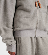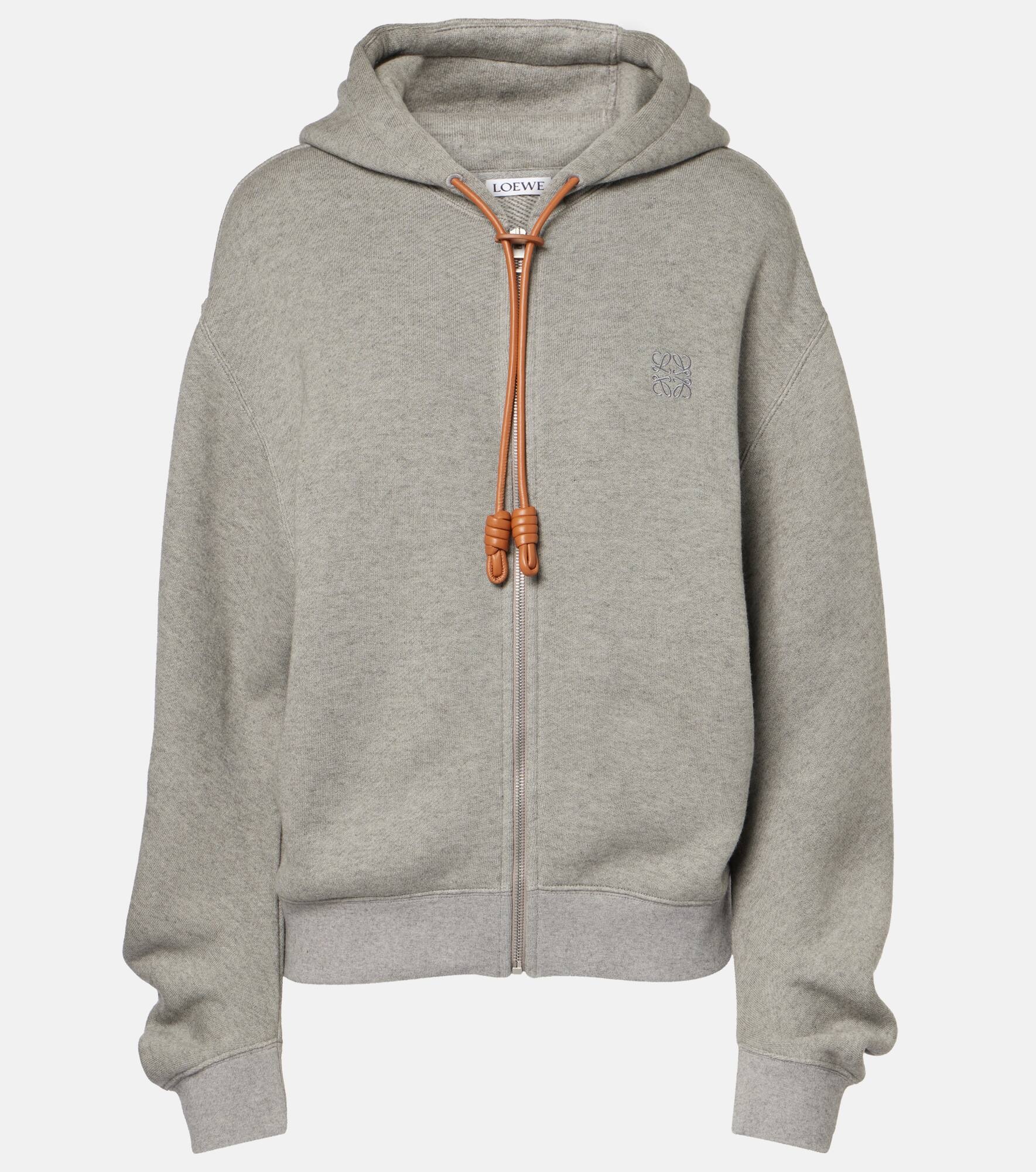 Product Details - Material: 95% cotton, 5% cashmere - Care instructions: dry clean - Made in Portugal - Designer color name: Grey - Trim: 100% leather - Closure: zipped front - Drawstring hood - Item number: P01000943 Size & Fit - True to size - Dropped shoulders - Designed for a loose fit - Elasticated hem - Stretchy fabric - Falls to the hip - The model seen in the picture is 178cm-5'10" and wearing a size XS