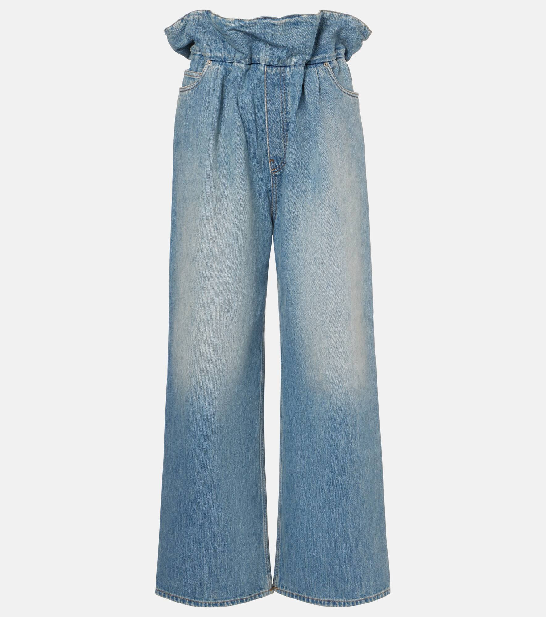 Founded in 1846, Loewe maintains a commitment to art and craft of the utmost quality. The Flamenco wide-leg jeans from Loewe blend a classic shape with an elasticated paperbag waist that adds a modern touch to the look. Product Details - Material: 100% cotton - Care instructions: machine wash at 30 degrees - Made in Italy - Designer color name: Denim Blue - Item color: blue - Embroidery: 100% polyester - Pocket lining: 65% polyester, 35% cotton - Elasticated waistband - Pockets: five pockets - Item number: P01066204 Size & Fit - True to size - Elasticated waist - Non-stretchy fabric - Wide-leg - High-rise - The model seen in the picture is 178cm-5'10" and wearing a size XS