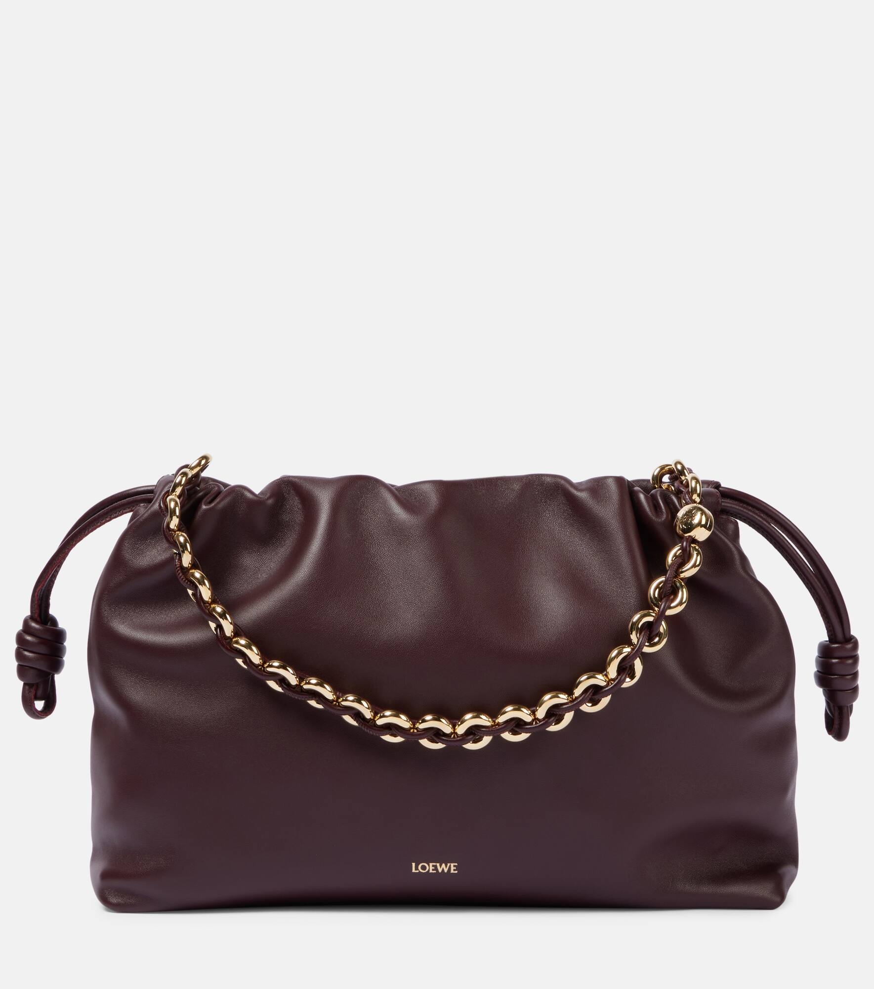 Product Details - Material: lamb leather - Lining: leather - Made in Spain - Designer color name: Dark Burgundy - Closure: magnetic-tab fastening, drawstring top - Top handles - Includes: dust bag - Item number: P00980653 Size & Fit - Height 25cm-10" - Width 40cm-15.5" - Depth 10cm-4" - Chain length 61cm-24" - Min. length shoulder strap 72cm-28.5" - Max. length shoulder strap 126cm-49.5"