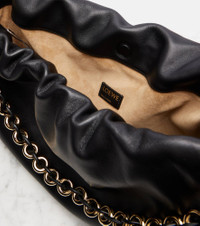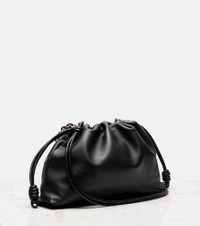 All of Loewe's leather goods are handcrafted in Spain, reflecting the house's centuries-long expertise and artisanal methods. Made from black leather with gold-toned hardware, the iconic Flamenco has arrived in Large proportions and the adjustable strap allows for both shoulder and crossbody carry. Product Details - Material: leather - Lining: suede - Made in Spain - Designer color name: Black - Item color: black - Contains non-textile parts of animal origin - Closure: drawstring top, magnetic fastening - Chain shoulder strap - Hardware color: gold - Item number: P01076866 Size & Fit - Height 25cm-10" - Width 40cm-15.5" - Depth 10cm-4" - Chain length 61cm-24" - Min. length shoulder strap 72cm-28.5" - Max. length shoulder strap 126cm-49.5"
