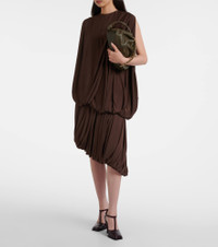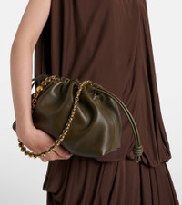 The Flamenco Medium leather clutch features a drawstring closure and a detachable chain and leather shoulder strap. All of Loewe's leather goods are handcrafted in Spain, reflecting the house's centuries-long expertise and artisanal methods. Product Details - Material: lamb leather - Lining: leather - Made in Spain - Color: green - Designer color name: Dark Khaki - Item color: green - Hardware color: gold - Closure: drawstring top, magnetic fastening - Detachable top handle, Detachable shoulder strap - Includes: dust bag - Item number: P01123273 Size & Fit - Width 32cm-12.5" - Depth 11cm-4.5" - Chain length 73cm-28.5" - Length of handle 20cm-8" - Length shoulder strap 90cm-35.5"
