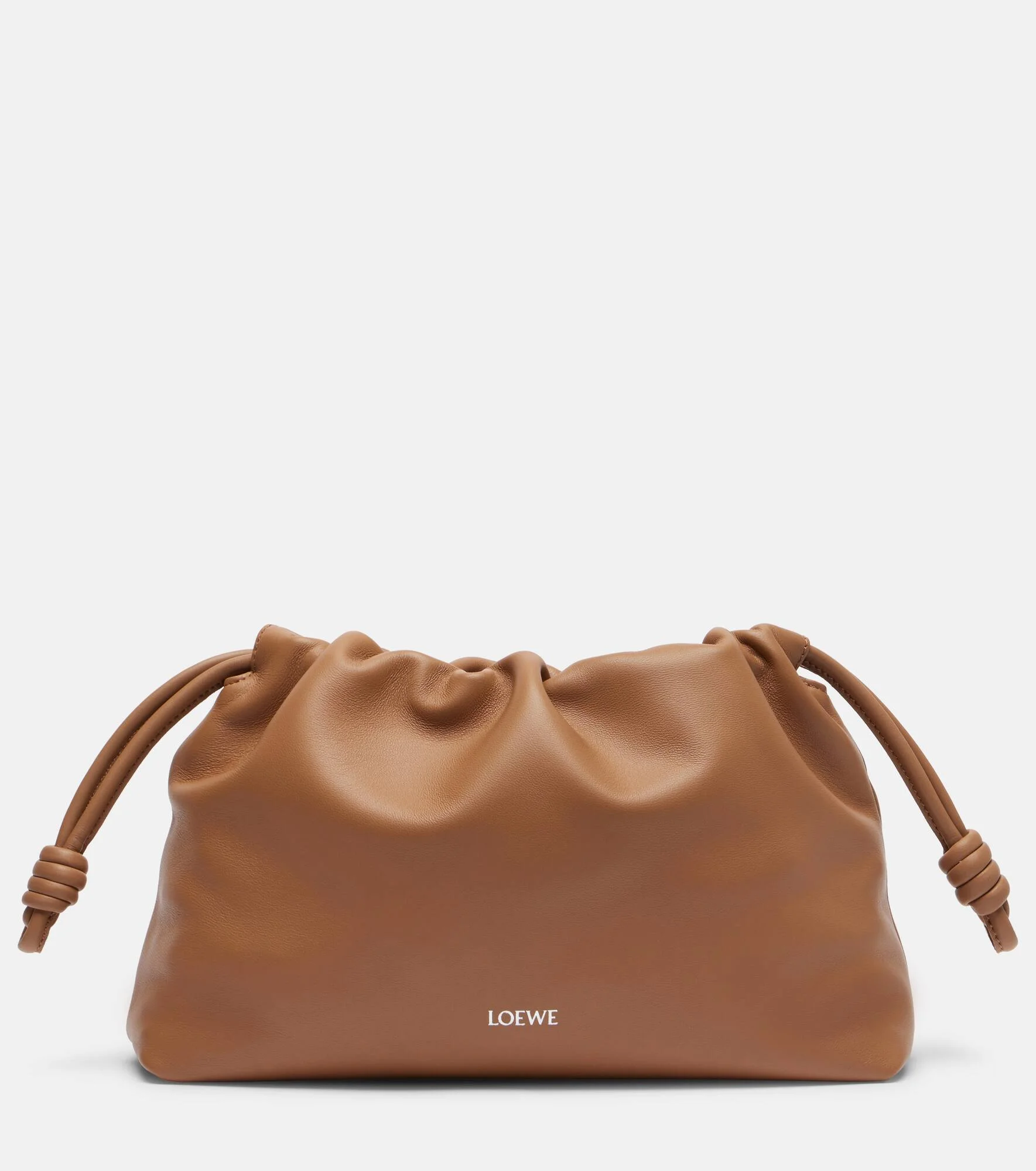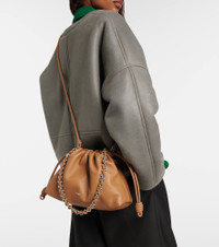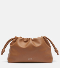 All of Loewe's leather goods are handcrafted in Spain, reflecting the house's centuries-long expertise and artisanal methods. The Flamenco Large leather shoulder bag showcases the iconic knot drawstrings and comes with a detachable shoulder strap. Product Details - Material: lamb leather - Lining: suede - Made in Spain - Designer color name: Mocha - Item color: brown - Hardware color: silver - Closure: magnetic fastening, drawstring top - Detachable shoulder strap - Includes: dust bag - Item number: P01117916 Size & Fit - Width 32cm-12.5" - Depth 11cm-4.5" - Chain length 73cm-28.5" - Length of handle 20cm-8" - Length shoulder strap 90cm-35.5"