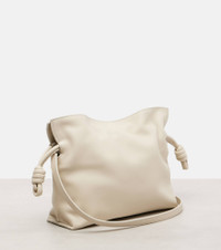 Crafted from leather, the Flamenco Mini clutch by Loewe showcases the brand's iconic knot drawstrings and comes with a detachable shoulder strap. The sophisticated design is complete with magnetic closure and the brand's logo on the front. Product Details - Material: leather - Lining: leather - Made in Spain - Designer color name: Sea Salt - Item color: white - Closure: magnetic fastening - Detachable shoulder strap - Hardware color: silver - Internal details: single compartment - Item number: P01087721 Size & Fit - Height 18,5cm-7.5" - Width 22cm-8.5" - Depth 6,5cm-2.5" - Adjustable shoulder strap - Max. length shoulder strap 120cm-47"