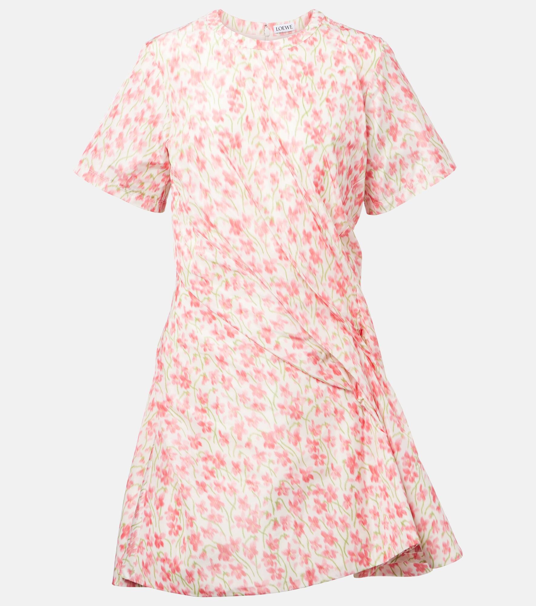 This minidress from Loewe features a charming, flowing silhouette with short sleeves and gathering at the sides. The design is complete with an all-over floral print for a romantic touch. Product Details - Material: 67% polyester, 33% silk - Care instructions: dry clean - Made in Spain - Designer color name: White/Pink - Item color: pink, white - Lining: 85% viscose, 9% polyamide, 6% elastane - Closure: invisible zipper - Item number: P01066191 Size & Fit - True to size - Cinched waist - Non-stretchy fabric - The model seen in the picture is 178cm-5'10" and wearing a size FR 36