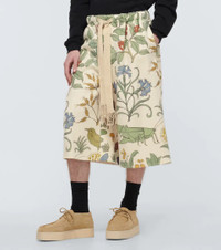Decorated with floral artwork, these long-length beige shorts from Loewe are crafted from wool. They offer a relaxed fit and have a comfortable drawstring waistband. Product Details - Elasticated drawstring waist - Material II: 100% cotton - Designer color name: Multicolor - Details: 100% calf leather - Pockets: side slit pockets - Material: 100% wool - Closure: buttoned front - Care instructions: dry clean - Pocket lining: 100% cotton - Item number: P00634707 Size & Fit - True to size - Elasticated waist - Adjustable at the waist - Wide-leg - Inseam length approx: 42cm-16.5" - The model in the picture is 185cm-6'1" and wearing a size IT 48