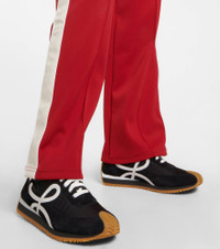 LOEWE is known for its craftsmanship, which sets these exceptional Flow Runner sneakers apart from the rest. Made from panels of black suede and technical fabric, they have white leather L appliqués at the lateral sides. Wear yours with top-to-toe neutrals for a color-coordinated look. Product Details - Upper: fabric, leather - Sole: leather insole, rubber sole - Toe shape: round toe - Closure: lace-up - Lining: fabric - Designer color name: Black/White - Made in Italy - Item number: P00578667 Size & Fit - True to size - Half sizes please take the next size down - European sizes - 1,5cm-0.5" platform (size EU 38) - 3,5cm-1.5" wedge heel (size EU 38)