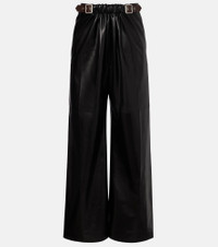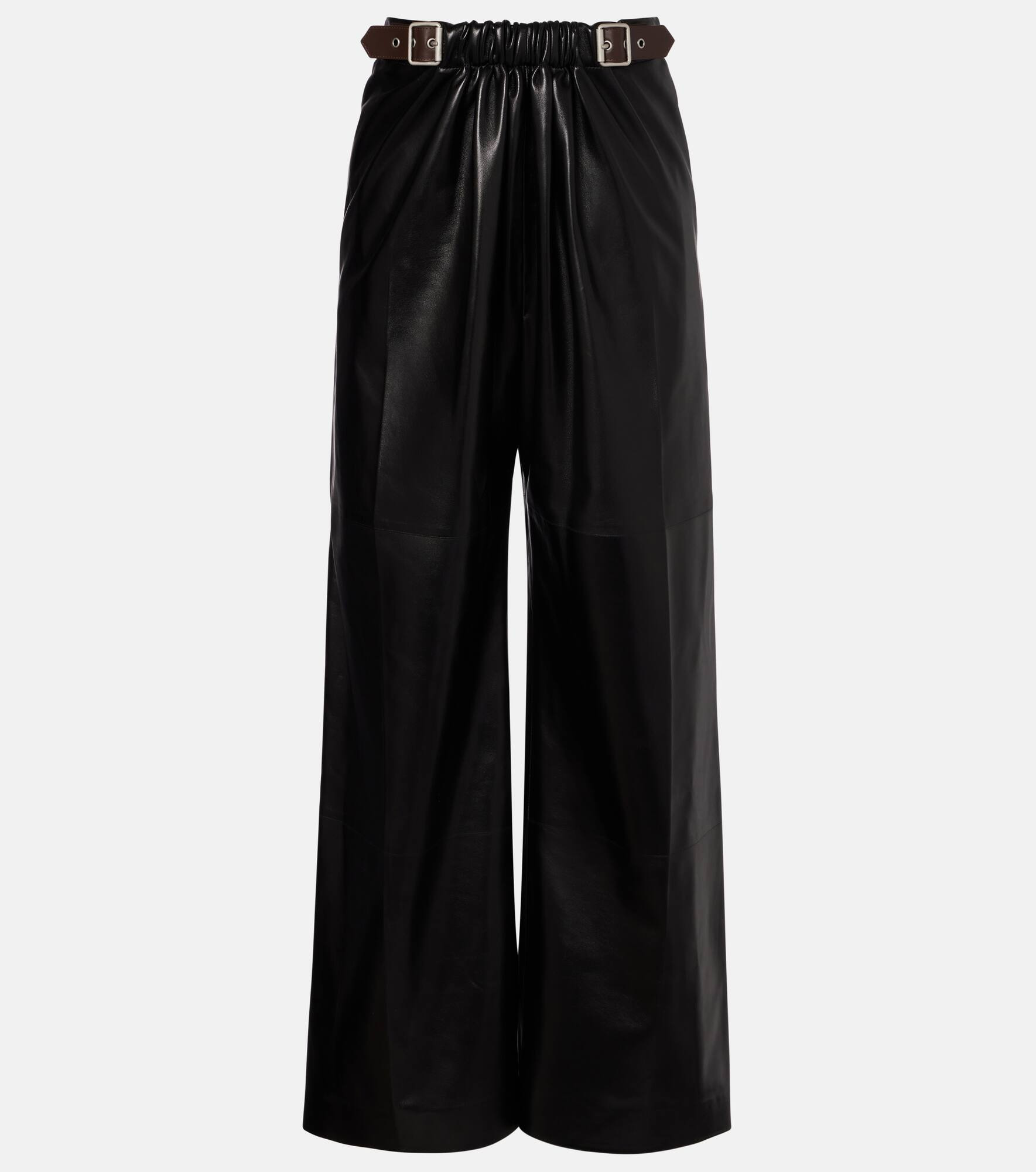 These wide-leg pants from Loewe deliver statement-making style from day to night. Crafted from supple leather, the black pair is defined by a gathered, belted waist, complete with silver-toned hardware. Product Details - Material: 100% lamb leather - Care instructions: specialist clean - Made in Italy - Designer color name: Black - Item color: black - Details: 100% calf leather - Lining: 100% viscose - Pocket lining: 100% cotton - Material II: 70% cotton, 30% polyester - Closure: zipped side - Pockets: side slit pockets, back pocket - Item number: P01104999 Size & Fit - True to size - Non-stretchy fabric - Wide-leg - High-waisted - The model seen in the picture is 178cm-5'10" and wearing a size FR 34