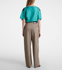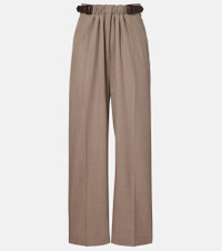 These wide-leg pants from Loewe deliver statement-making style from day to night. Crafted from pure wool, the pair are defined by a gathered, belted waist, and debossed logo leather patch at the back. Product Details - Material: 100% wool - Care instructions: dry clean - Made in Italy - Designer color name: Beige Melange - Item color: beige - Insert: 100% calf leather - Contains non-textile parts of animal origin - Lining: 100% cotton - Material II: 90% cotton, 10% polyester - Closure: zipped side - Pockets: side slit pockets, back pocket - Item number: P01104965 Size & Fit - True to size - Non-stretchy fabric - Wide-leg - Sits low on the hips - The model seen in the picture is 178cm-5'10" and wearing a size FR 34