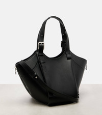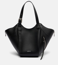 Loewe's Hammock Flip tote bag is designed for multi-functional use – note the zips, handles, and soft construction that allow for versatile carry options. Arriving in smooth calfskin leather, this Medium iteration has knotted sides and rests in the crook of your arm. Product Details - Material: leather - Lining: leather - Made in Spain - Color: black - Designer color name: Black - Item color: black - Adjustable top handles, Detachable, adjustable shoulder strap - Closure: magnetic fastening - Hardware color: silver - Internal details: internal slot pocket - Item number: P01117898 Size & Fit - Height 22cm-8.5" - Width 32cm-12.5" - Depth 13cm-5" - Length of handles 36/54cm-14/21.5" - Adjustable shoulder strap - Min. length shoulder strap 48cm-19" - Max. length shoulder strap 60cm-23.5"