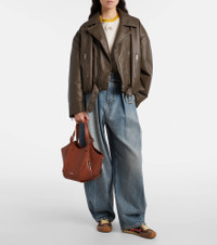 Expand your accessories edit with the Hammock Flip Medium tote bag from Loewe. Crafted in Spain from leather, the piece features a spacious silhouette with an external zipped pocket and adjustable top handles. Product Details - Material: leather - Lining: fabric - Made in Spain - Color: brown - Designer color name: Squirrel - Item color: brown - Adjustable top handles, Detachable, adjustable shoulder strap - Internal details: internal slot pockets - Hardware color: silver - Closure: magnetic fastening - Includes: dust bag - Item number: P01117897 Size & Fit - Height 22cm-8.5" - Width 32cm-12.5" - Depth 13cm-5" - Length of handles 36/54cm-14/21.5" - Adjustable shoulder strap - Min. length shoulder strap 48cm-19" - Max. length shoulder strap 60cm-23.5"