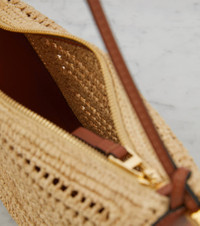 Product Details - Material: raffia - Lining: unlined - Made in Spain - Designer color name: Tan/Natural - Closure: zipped top - Adjustable top handles - Includes: dust bag - Item number: P00944358 Size & Fit - Height 17cm-6.5" - Max. width 28cm-11" - Max. depth 10cm-4" - Min. length shoulder strap 96cm-38" - Max. length shoulder strap 116cm-45.5"