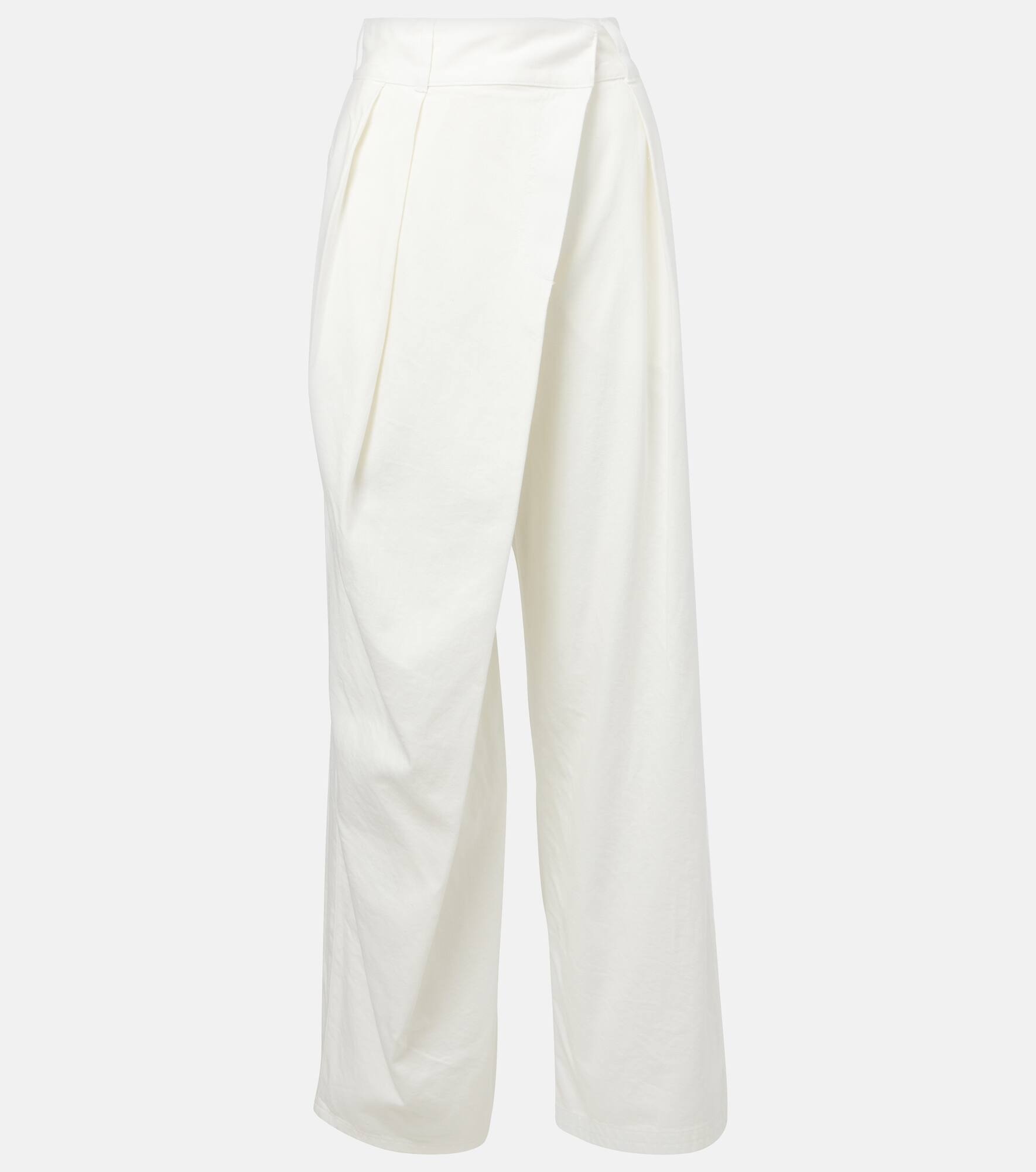 Crafted from lightweight cotton twill, these high-rise wide-leg pants from Loewe feature a charming wrap construction with a cropped length. The design is complete with side slit pockets and a buttoned rear welt pocket for an effortless look. Product Details - Material: 100% cotton - Care instructions: dry clean - Made in Italy - Designer color name: White - Item color: white - Lining: 65% polyester, 35% cotton - Insert: 100% calf leather - Closure: zipper fly, button and hook fastenings - Pockets: side slit pockets, back pocket - Belt loops - Contains non-textile parts of animal origin - Item number: P01066210 Size & Fit - True to size - Non-stretchy fabric - Wide-leg - High-waisted - The model seen in the picture is 178cm-5'10" and wearing a size FR 36