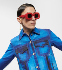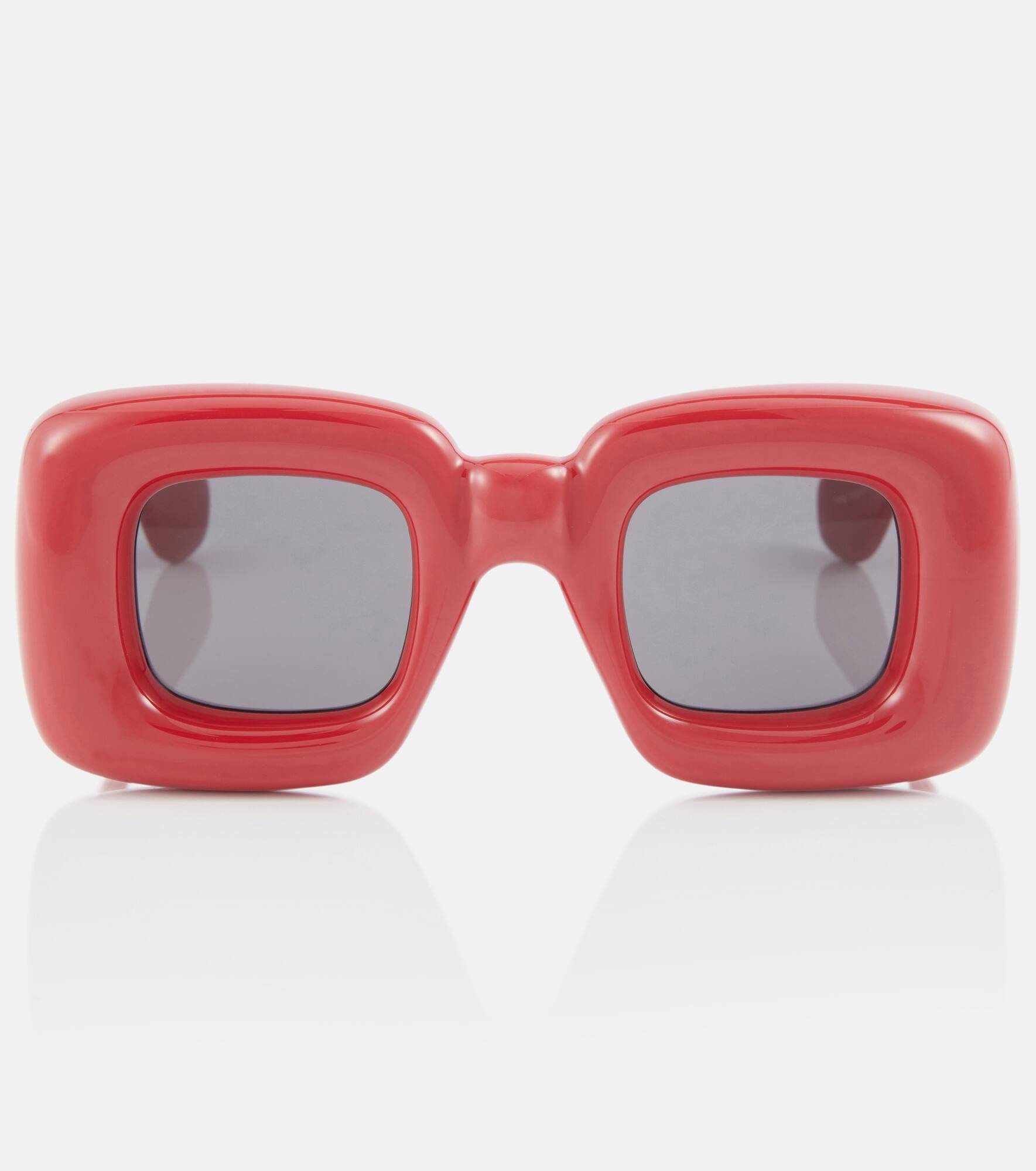 Loewe expands its playful balloon motif to accessories with the Inflated square sunglasses. Made in Italy from red acetate, the style has black lenses and the brand's name emblazoned on the arms. Product Details - Frame color: red - Frame material: acetate - Lens color: black - comes with cleaning cloth - comes in a case - The color of the case may vary - Lens filter category 3 - Made in Italy - Item number: P00739110 Size & Fit - Lens width: 41mm-1.6" - Bridge size: 28mm-1.1" - Earpiece length: 145mm-5.7"