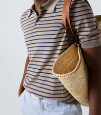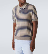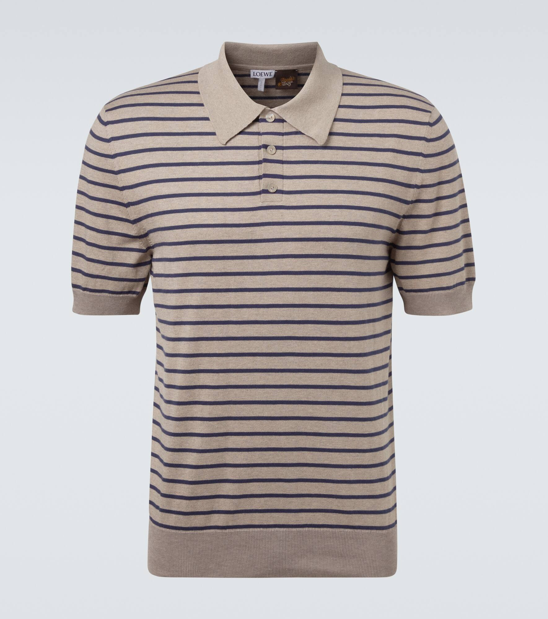 Founded in 1846 as a leathermaking company, Loewe maintains a commitment to art and craft of the utmost quality. This polo shirt is knitted from cotton-blend material and features all-over stripes and the brand's Anagram logo at the back of the collar. Product Details - Material: 94% cotton, 5% polyamide, 1% elastane - Care instructions: dry clean - Made in Italy - Designer color name: Grey/Navy Blue - Item color: gray, blue - Embroidery: 100% polyester - Collar: polo collar - Closure: partially button-down - Item number: P01048274 Size & Fit - True to size - Straight fit - Stretchy fabric - Falls to the hip - Height of model is 189cm-74.5" and wears a size L