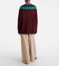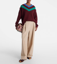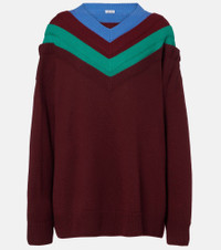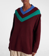 Founded in 1846 as a leathermaking company, Loewe maintains a commitment to art and craft of the utmost quality. This sweater is crafted from wool and boasts layers of vibrantly hued V-necklines. Product Details - Material: 100% wool - Care instructions: dry clean - Made in Italy - Designer color name: Green/Red/Multicolor - Item color: burgundy, multicolor - Details: 100% lamb leather - Contains non-textile parts of animal origin - Collar: V-neck - Hem: ribbed - Cuff: ribbed - Item number: P01104987 Size & Fit - True to size - Dropped shoulders - Designed for a loose fit - Falls below the hip - The model seen in the picture is 178cm-5'10" and wearing a size XS