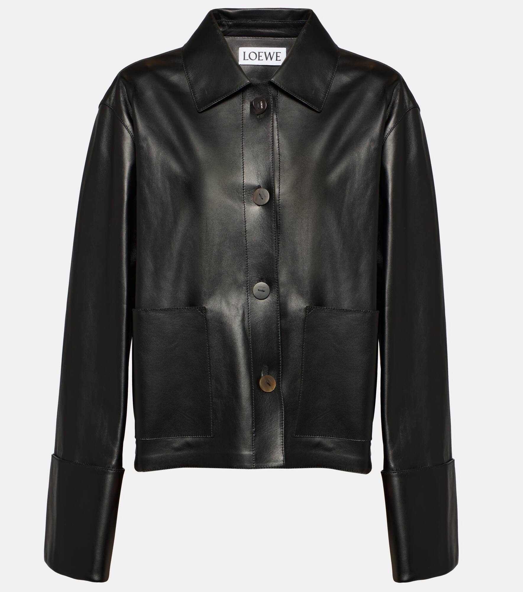 Product Details - Material: 100% lamb leather - Care instructions: specialist clean - Made in Italy - Designer color name: Nero - Closure: buttoned front - Pockets: patch pockets - Item number: P00880860 Size & Fit - True to size - Dropped shoulders - Oversized - Non-stretchy fabric - Falls to the hip - The model seen in the picture is 178cm-5'10" and wearing a size FR 36